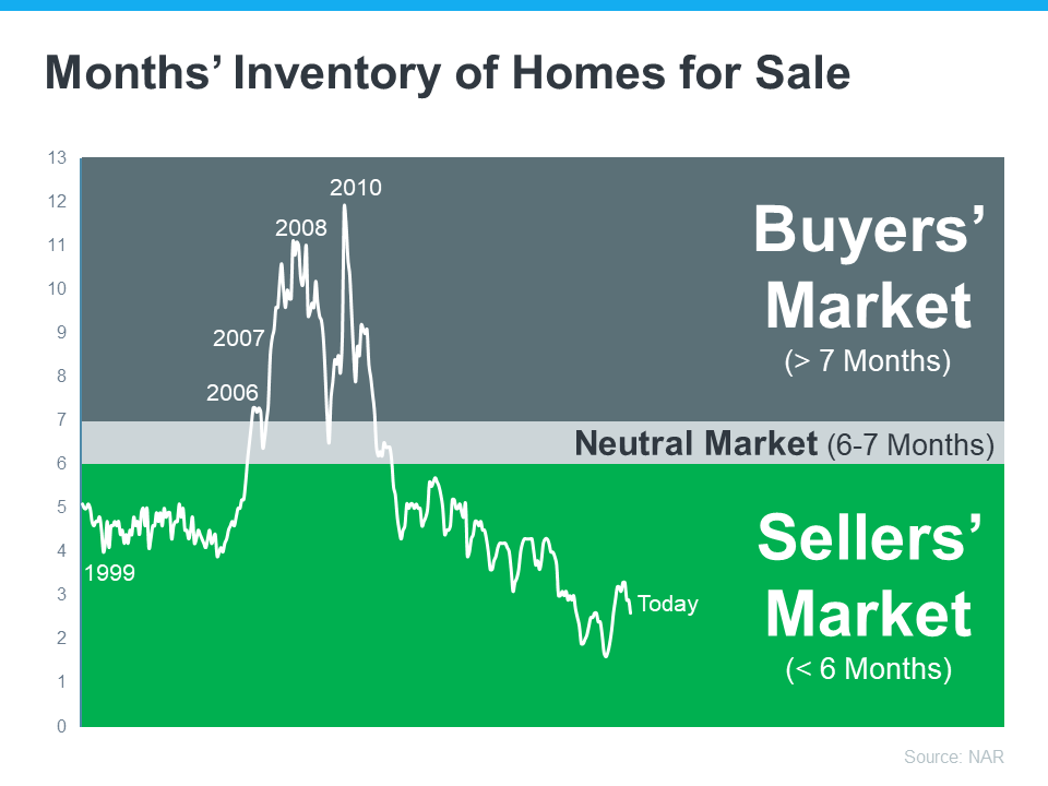 We’re in a Sellers’ Market. What Does That Mean? Even though activity in the housing market has slowed from the frenzy we saw over a year ago, today’s low supply of homes for sale is still a sellers’ market. But what does that really mean? And why are conditions today so good if you want to list your house? It starts with the number of homes available for sale. The latest Existing Home Sales Report from the National Association of Realtors (NAR) shows housing supply is still astonishingly low. Today, we have a 2.6-month supply of homes at the current sales pace. Historically, a 6-month supply is necessary for a ‘normal’ or ‘neutral’ market in which there are enough homes available for active buyers (see graph below): What Does This Mean for You? When the supply of homes for sale is as low as it is right now, it’s much harder for buyers to find one to purchase. That creates increased competition among purchasers and keeps upward pressure on prices. And if buyers know they’re not the only one interested in a home, they’re going to do their best to submit a very attractive offer. As this happens, sellers are positioned to negotiate deals that meet their ideal terms. Lawrence Yun, Chief Economist at NAR, says: “Inventory levels are still at historic lows. Consequently, multiple offers are returning on a good number of properties.” Right now, there are still buyers who are ready, willing, and able to purchase a home. If you list your house right now in good condition and at the right price, it could get a lot of attention from competitive buyers. Bottom Line Today’s sellers’ market holds great opportunities for homeowners ready to make a move. Listing your house now will maximize your exposure to serious, competitive buyers. Let’s connect to discuss how to jumpstart the selling process.