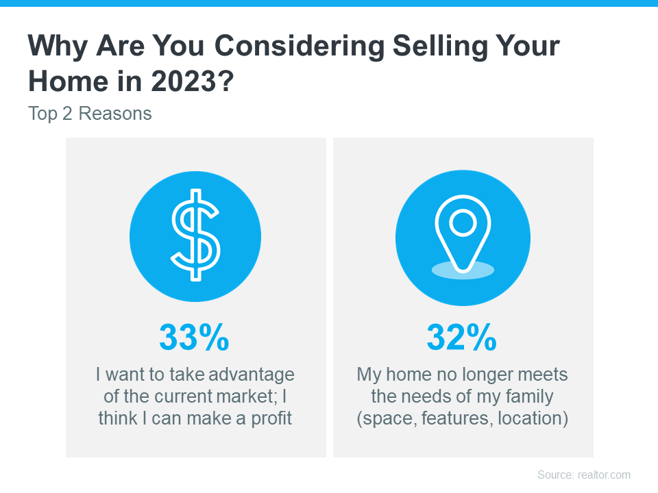 Two Reasons You Should Sell Your House Wondering if you should sell your house this year? As you make your decision, think about what’s motivating you to consider moving. A recent survey from realtor.com asked why homeowners are thinking about selling their houses this year. Here are the top two reasons (see graphic below): Let’s break those reasons down and explore how they might resonate with you. 1. I Want To Take Advantage of the Current Market and Make a Profit When you decide to sell your house, how much you’ll make from the sale will likely be top of mind. So, here’s some good news: according to the latest data, the average seller can expect a strong return on their investment when they make a move. ATTOM explains: “The $112,000 profit on median-priced home sales in 2022 represented a 51.4% return on investment compared to the original purchase price, up from 44.6% last year and from 32.8% in 2020.” Even though home prices have declined slightly in some markets, they’re still much higher overall than they were just a few years ago. To understand what’s happening with home prices in your area and the current value of your house, work with a local real estate professional. They can give you the best advice on how much you could gain if you sell this year. 2. My Home No Longer Meets My Needs The average person has been in their house for ten years. That’s a long time when you think about how much may have changed in your life since you moved in. And typically, those changes have a direct impact on what you need in a home. Whether it’s more (or less) space, different features, or a location closer to your work or loved ones, your current house may no longer check all the boxes of what feels like home to you. If that’s the case, it could be time to work with a real estate agent to find a better fit. Bottom Line If you’re thinking about selling your house, there’s probably a good reason for it. Let’s connect so you can make a move that’ll help you accomplish your goals this year.