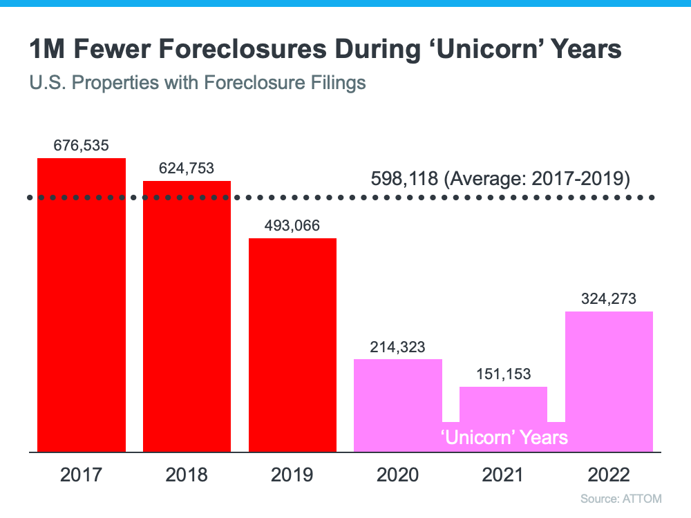 Today’s Real Estate Market: The ‘Unicorns’ Have Galloped Off Comparing real estate metrics from one year to another can be challenging in a normal housing market. That’s due to possible variability in the market making the comparison less meaningful or accurate. Unpredictable events can have a significant impact on the circumstances and outcomes being compared. Comparing this year’s numbers to the two ‘unicorn’ years we just experienced is almost worthless. By ‘unicorn,’ this is the less common definition of the word: “Something that is greatly desired but difficult or impossible to find.” The pandemic profoundly changed real estate over the last few years. The demand for a home of our own skyrocketed, and people needed a home office and big backyard. Waves of first-time and second-home buyers entered the market. Already low mortgage rates were driven to historic lows. The forbearance plan all but eliminated foreclosures. Home values reached appreciation levels never seen before. It was a market that forever had been “greatly desired but difficult or impossible to find.” A ‘unicorn’ year. Now, things are getting back to normal. The ‘unicorns’ have galloped off. Comparing today’s market to those years makes no sense. Here are three examples: Buyer Demand If you look at the headlines, you’d think there aren’t any buyers out there. We still sell over 10,000 houses a day in the United States. Of course, buyer demand is down from the two ‘unicorn’ years. But, according to ShowingTime, if we compare it to normal years (2017-2019), we can see that buyer activity is still strong (see graph below): Home Prices We can’t compare today’s home price increases to the last couple of years. According to Freddie Mac, 2020 and 2021 each had historic appreciation numbers. Here’s a graph also showing the more normal years (2017-2019): We can see that we’re returning to more normal home value increases. There were several months of minimal depreciation in the second half of 2022. However, according to Fannie Mae, the market has returned to more normal appreciation in the first quarter of this year. Foreclosures There have already been some startling headlines about the percentage increases in foreclosure filings. Of course, the percentages will be up. They are increases over historically low foreclosure rates. Here’s a graph with information from ATTOM, a property data provider: There will be an increase over the numbers of the last three years now that the moratorium on foreclosures has ended. There are homeowners who lose their home to foreclosure every year, and it’s heartbreaking for those families. But, if we put the current numbers into perspective, we’ll realize that we’re actually going back to the normal filings from 2017-2019. Bottom Line There will be very unsettling headlines around the housing market this year. Most will come from inappropriate comparisons to the ‘unicorn’ years. Let’s connect so you have an expert on your side to help you keep everything in proper perspective.