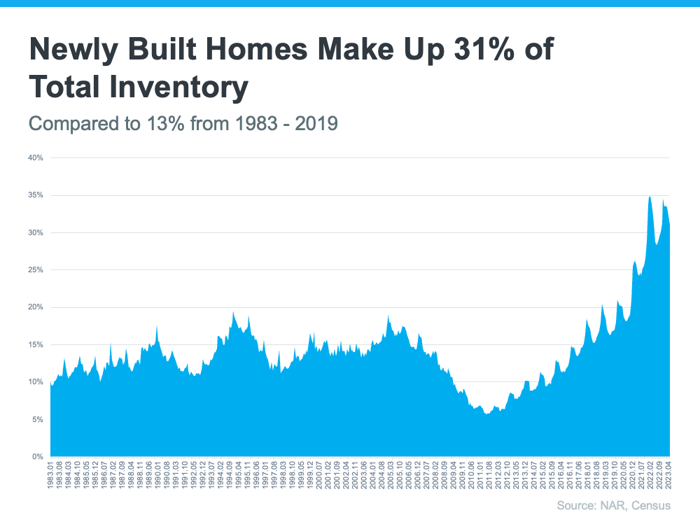 Where Will You Go If You Sell? Newly Built Homes Might Be the Answer. Do you want to sell your house, but hesitate because you’re worried you won’t be able to find your next home in today’s market? You're not alone, but there’s some good news that may ease your worries. New home construction is up and is becoming an increasingly significant part of the housing inventory. That means when you go to put your house on the market this summer, considering newly built homes is crucial for expanding the options you’ll have for your next move. Near-Record Percentage of New Home Inventory Newly built homes today make up a near-record percentage of the total number of homes available for sale (see graph below): In fact, as the data shows, newly built homes now make up 31% of the total for-sale inventory. Over the past couple of decades, newly built homes made up an average of only around 13% of total housing inventory from 1983 to 2019. That means the percentage of the total available homes that are newly built is over two times higher than the norm. Why This Matters to You  Overall, the supply of homes for sale is still low. And when there’s limited supply, it’s crucial to explore all of your available choices. New-home construction has emerged as a game changer with increasing inventory. Not to mention, recent data shows it’s gaining even more momentum as more newly built homes are underway and will be coming to the market in the months ahead. Robert Dietz, Chief Economist at the National Association of Home Builders (NAHB), highlights the importance of newly built homes for those looking to buy in today’s housing market. Dietz states: "With limited available housing inventory, new construction will continue to be a significant part of prospective buyers' search in the quarters ahead." Don’t overlook this growing market segment and risk missing out on great opportunities to find your ideal home. Since new home construction accounts for roughly 31% of total for sale inventory, you could be cutting nearly one in three options from your search if you don’t consider newly built homes.  If you’re looking to make a move, a local real estate agent can help you sell your current house and explore newly built options in your area. They have the expertise you need to handle both sides of the process so you can move out of your current house and into your brand-new dream home. Bottom Line Now’s the time to sell your house and take advantage of the momentum that’s building in new home construction. Let’s connect so you have a guide throughout the selling and buying process. Together, we can make your transition to a newly built home a reality.