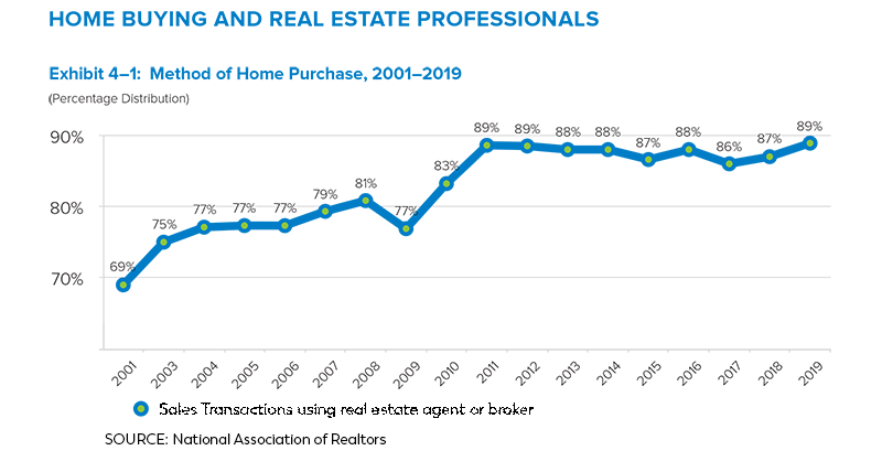According to the National Association of Realtors (NAR), last year 89% of all real estate sales transactions in America was conducted using real estate agents and brokers. With all the available technologies, including AI (artificial intelligent), consumers still are more and more relying on the real estate agents to buy and sell properties. For many consumers, real estate is the biggest and most important purchase in their lifetime; working with a real estate professional only makes sense.