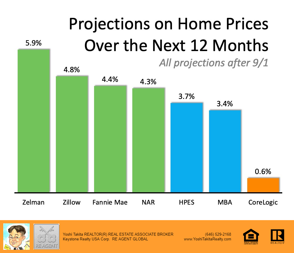What are the experts forecasting for home prices going forward? Below is a graph of home price projections for the next year. Since the market has changed dramatically over the last few months, this graph shows forecasts that have been published since September 1st.
