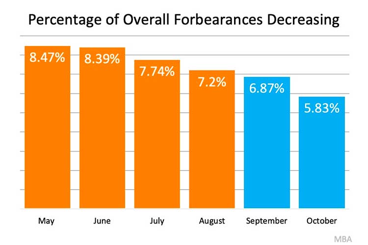 When looking at the percentage of people in forbearance, we can also see that this number has been decreasing steadily throughout the year. Fewer people than initially expected are still in forbearance, so the number of homeowners who will need to work out alternative payment options is declining (See graph below):Why the 2021 Forecast Doesn’t Call for a Foreclosure Crisis | Simplifying The MarketThis means there are fewer and fewer homeowners at risk of foreclosure, and many who initially applied for forbearance didn’t end up needing it. Mike Fratantoni, Senior Vice President and Chief Economist at the Mortgage Bankers Association (MBA), explains: