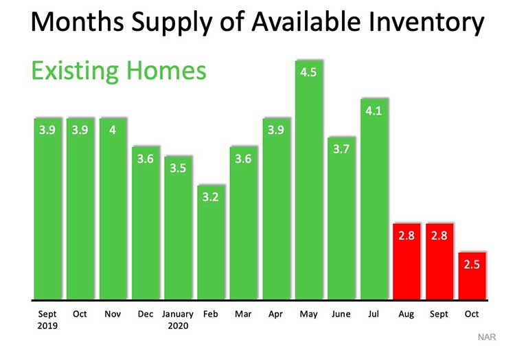 Historically, six months of supply is considered a normal real estate market. Going into the pandemic, inventory was already well below this mark. As the year progressed, the supply has was reduced even further. Here is a graph showing this measurement over the last year: