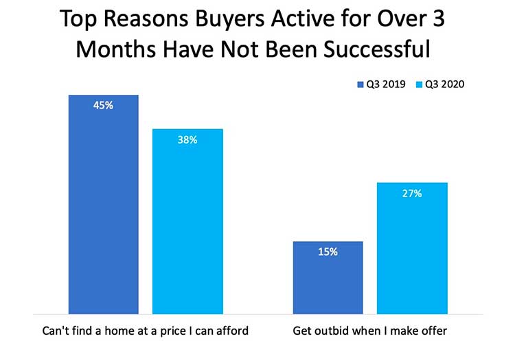 “Difficulties finding a home to buy will likely lead 20% of active buyers to give up until next year or later. That share is up from 15% a year earlier.”