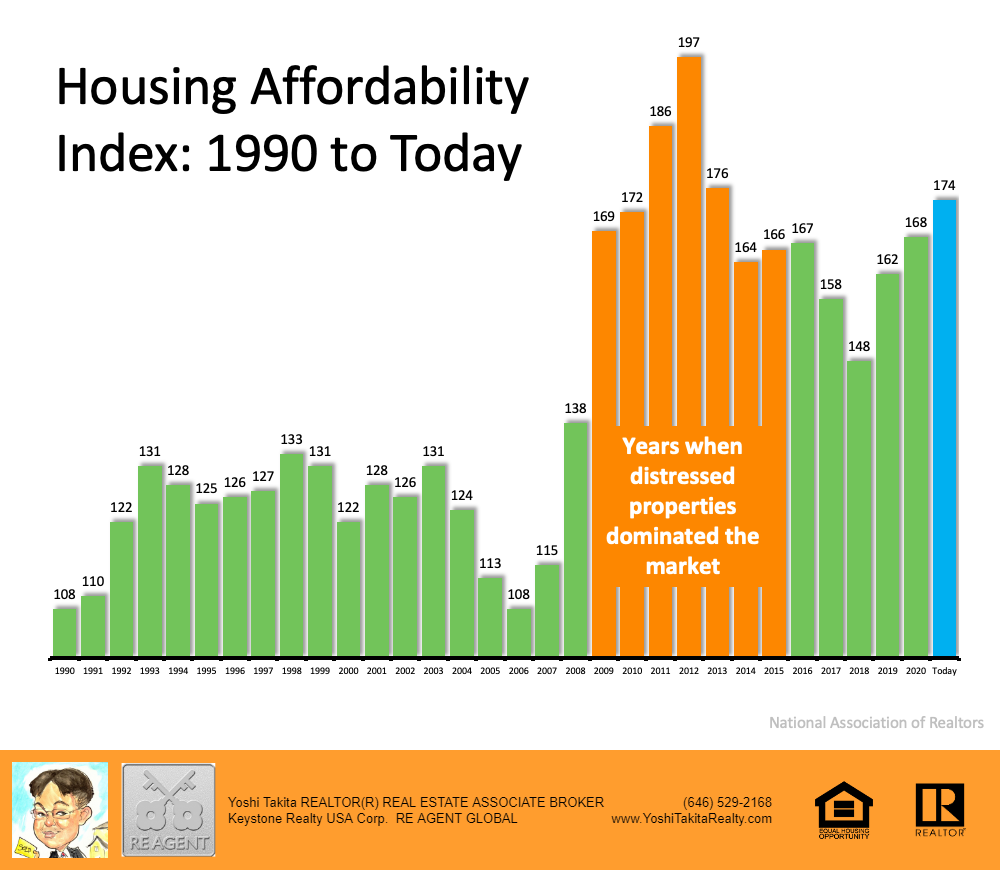 Buying a Home Is Still Affordable Buying a Home Is Still Affordable | MyKCM The last year has put emphasis on the importance of one’s home. As a result, some renters are making the jump into homeownership while some homeowners are re-evaluating their current house and considering a move to one that better fits their current lifestyle. Understanding how housing affordability works and the main market factors that impact it may help those who are ready to buy a home narrow down the optimal window of time in which to make a purchase. There are three main factors that go into determining how affordable homes are for buyers: Mortgage Rates Mortgage Payments as a Percentage of Income Home Prices The National Association of Realtors (NAR) produces a Housing Affordability Index. It takes these three factors into account and determines an overall affordability score for housing. According to NAR, the index: “…measures whether or not a typical family earns enough income to qualify for a mortgage loan on a typical home at the national and regional levels based on the most recent price and income data.” Their methodology states: “To interpret the indices, a value of 100 means that a family with the median income has exactly enough income to qualify for a mortgage on a median-priced home. An index above 100 signifies that family earning the median income has more than enough income to qualify for a mortgage loan on a median-priced home, assuming a 20 percent down payment.” So, the higher the index, the more affordable it is to purchase a home. Here’s a graph of the index going back to 1990:Buying a Home Is Still Affordable | MyKCMThe blue bar represents today’s affordability. We can see that homes are more affordable now than they’ve been at any point since the housing crash when distressed properties (foreclosures and short sales) dominated the market. Those properties were sold at large discounts not seen before in the housing market for almost one hundred years. Why are homes so affordable today? Although there are three factors that drive the overall equation, the one that’s playing the largest part in today’s homebuying affordability is historically low mortgage rates. Based on this primary factor, we can see that it’s more affordable to buy a home today than at any time in the last eight years. If you’re considering purchasing your first home or moving up to the one you’ve always hoped for, it’s important to understand how affordability plays into the overall cost of your home. With that in mind, buying while mortgage rates are as low as they are now may save you quite a bit of money over the life of your home loan. Bottom Line If you feel ready to buy, purchasing a home this summer may save you a significant amount of money over time based on historical affordability trends. Let’s connect today to determine if now is the right time for you to make your move.
