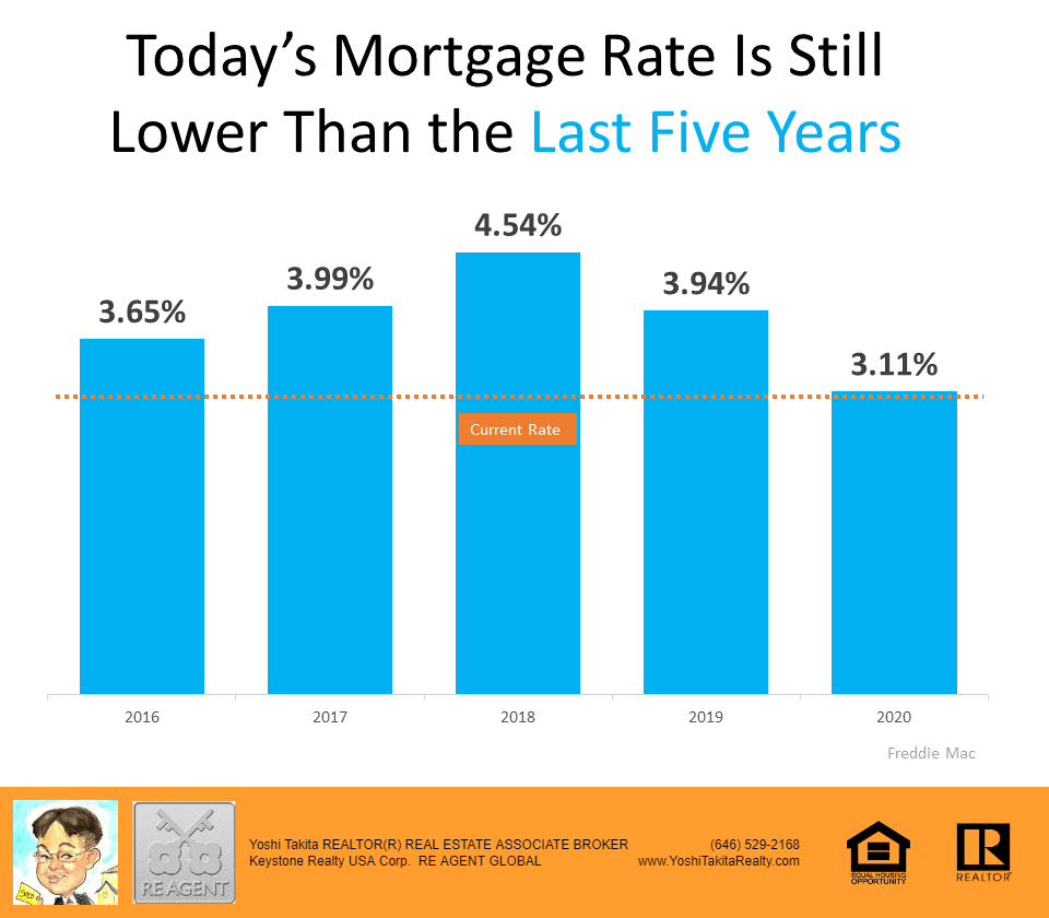 Two Graphs That Show Why You Shouldn’t Be Upset About 3% Mortgage Rates Two Graphs That Show Why You Shouldn’t Be Upset About 3% Mortgage Rates | MyKCM With the average 30-year fixed mortgage rate from Freddie Mac climbing above 3%, rising rates are one of the topics dominating the discussion in the housing market today. And since experts project rates will rise further in the coming months, that conversation isn’t going away any time soon. But as a homebuyer, what do rates above 3% really mean? Today’s Average Mortgage Rate Still Presents Buyers with a Great Opportunity Buyers don’t want mortgage rates to rise, as any upward movement increases your monthly mortgage payment. But it’s important to put today’s average mortgage rate into perspective. The graph below shows today’s rate in comparison to average rates over the last five years:Two Graphs That Show Why You Shouldn’t Be Upset About 3% Mortgage Rates | MyKCMAs the graph shows, even though today’s rate is above 3%, it’s still incredibly competitive. But today’s rate isn’t just low when compared to the most recent years. To truly put today into perspective, let’s look at the last 50 years (see graph below):Two Graphs That Show Why You Shouldn’t Be Upset About 3% Mortgage Rates | MyKCMWhen we look back even further, we can see that today’s rate is truly outstanding by comparison. What Does That Mean for You? Being upset that you missed out on sub-3% mortgage rates is understandable. But it’s important to realize, buying now still makes sense as experts project rates will continue to rise. And as rates rise, it will cost more to purchase a home. As Mark Fleming, Chief Economist at First American, explains: “Rising mortgage rates, all else equal, will diminish house-buying power, meaning it will cost more per month for a borrower to buy ‘their same home.’” In other words, the longer you wait, the more it will cost you. Bottom Line While it’s true today’s average mortgage rate is higher than just a few months ago, 3% mortgage rates shouldn’t deter you from your homebuying goals. Historically, today’s rate is still low. And since rates are expected to continue rising, buying now could save you money in the long run. Let’s connect so you can lock in a great rate now.