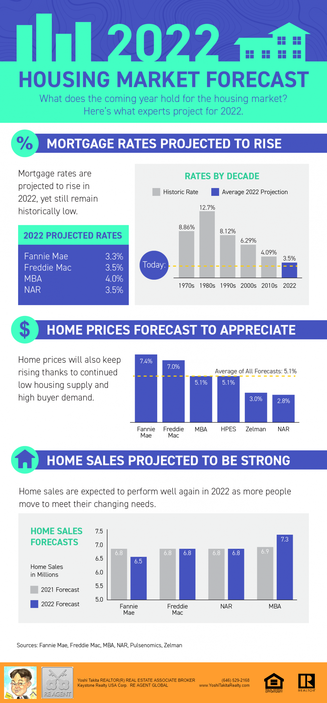 2022 Housing Market Forecast [INFOGRAPHIC] 2022 Housing Market Forecast [INFOGRAPHIC] | MyKCM Some Highlights What does the coming year hold for the housing market? Here’s what experts project for 2022. Mortgage rates are projected to rise and so are home prices. Experts are forecasting buyer demand will remain strong as people try to capitalize on rates and prices before they climb, creating another strong year for home sales. Let’s connect so you can make your best move in the new year.
