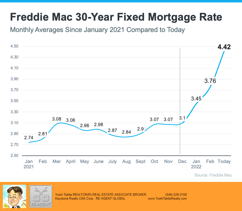 What’s Happening with Mortgage Rates, and Where Will They Go from Here? What’s Happening with Mortgage Rates, and Where Will They Go from Here? | MyKCM Based on the Primary Mortgage Market Survey from Freddie Mac, the average 30-year fixed-rate mortgage has increased by 1.2% (3.22% to 4.42%) since January of this year. The rate jumped by more than a quarter of a point from just a week ago. Here’s a visual to show how mortgage rate movement throughout 2021 was steady compared to the rapid increase in mortgage rates this year: What’s Happening with Mortgage Rates, and Where Will They Go from Here? | MyKCM Just a few months ago, Freddie Mac projected mortgage rates would average 3.6% in 2022. Earlier this month, Fannie Mae forecast mortgage rates would average 3.8% in 2022. As the chart above shows, rates have already surpassed those projections. Sam Khater, Chief Economist at Freddie Mac, explained in a press release last week: “This week, the 30-year fixed-rate mortgage increased by more than a quarter of a percent as mortgage rates across all loan types continued to move up. Rising inflation, escalating geopolitical uncertainty and the Federal Reserve’s actions are driving rates higher and weakening consumers’ purchasing power.” Where Are Mortgage Rates Going from Here? In a recent article by Bankrate, several industry experts weighed in on where rates might be headed going forward. Here are some of their forecasts: Greg McBride, Chief Financial Analyst, Bankrate: “With inflation figures continuing to surprise to the upside, mortgage rates will remain above 4.0% on the 30-year fixed.” Nadia Evangelou, Senior Economist and Director of Forecasting, National Association of Realtors (NAR): “While higher short-term interest rates will push up mortgage rates, I expect some of this impact to be mitigated eventually through lower inflation. Thus, I expect the 30-year fixed mortgage rate to continue to rise, although we aren’t likely to see the big jumps that occurred over the past few weeks.” Len Kiefer, Deputy Chief Economist, Freddie Mac: “Mortgage rates are likely to continue to move higher throughout the balance of 2022, although the pace of rate increases is likely to moderate.” In a recent realtor.com article, another expert adds to the conversation: Danielle Hale, Chief Economist, realtor.com: “. . . As markets digest the Fed’s updated economic projections, I anticipate a continued increase in mortgage rates over the next several months. . . .” What Does This Mean for You if You’re Looking To Buy a Home? With both mortgage rates and home values expected to increase throughout the year, it would be better to buy sooner rather than later if you’re able. That’s because it’ll cost you more the longer you wait. But, there is a possible silver lining to buying a home right now. While you’ll be paying a higher price and a higher mortgage rate than you would have last year, rising prices do have a long-term benefit once you buy. If you purchase a home today valued at $400,000 and put 10% down, you would be taking out a $360,000 mortgage. According to mortgagecalculator.net, at a 4.42% fixed mortgage rate, your mortgage payment would be $1,807 a month (this does not include insurance, taxes, and other fees because those vary by location). Now, let’s put that mortgage payment into a new perspective based on the substantial growth in equity that comes with the escalation in home prices. Every quarter, Pulsenomics surveys a panel of over 100 economists, investment strategists, and housing market analysts about their expectations for future home prices in the United States. Last week, Pulsenomics released their latest Home Price Expectation Survey. The survey reveals that the average of the experts’ forecasts calls for a 9% increase in home values in 2022. Based on those projections, a $400,000 house you buy today could be valued at $436,000 by this time next year. If you break that down, that means the equity in your home would increase by $3,000 a month over that period. That’s greater than the estimated monthly payment above. Granted, the increase in your net worth is tied to the home, but it is one way to put the home price appreciation to use in a way that benefits you. Bottom Line Paying a higher price for a home and a higher mortgage rate can be a difficult pill to swallow. However, waiting will just cost you more. If you’re ready, willing, and able to buy a home, now will be a better time than a year, or even six months from now. Let’s connect to begin the process today.
