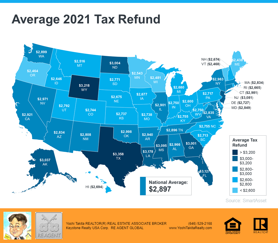 Using Your Tax Refund To Achieve Your Homeownership Goals This Year Using Your Tax Refund To Achieve Your Homeownership Goals This Year | MyKCM If you’re buying or selling a home this year, you’re likely saving up for a variety of expenses. For buyers, that might include things like your down payment and closing costs. And for sellers, you’re probably working on a bit of spring cleaning and maintenance to spruce up your house before you list it. Either way, any money you get back from your taxes can help you achieve your goals. Using a tax refund is a common tactic for buyers and sellers. SmartAsset estimates the average American will receive a $2,897 tax refund this year. The map below provides a more detailed estimate by state: Using Your Tax Refund To Achieve Your Homeownership Goals This Year | MyKCM If you’re getting a refund this year, here are a few tips to help with your home purchase or sale this season. How Buyers Can Use Their Tax Refund According to American Financing, there are multiple ways your refund check can help you as a homebuyer. A few include: Growing your down payment fund – If you haven’t started saving for your down payment, let your tax refund kick off the process. And if you have a fund already, the money you get back could put you closer to your goal. Paying for your home inspection – Your home inspection can save you a lot of headaches down the road by helping you determine the condition of the house. As a buyer, you’ll typically be responsible for paying for your inspection, and it’s definitely worth the investment. Saving for closing costs – Closing costs are additional expenses you’ll need to pay once it’s time to close. They average anywhere between 2-5% of the purchase price of your home. This list is a great start, but it isn’t exhaustive of all the costs you may encounter as you set out on your homebuying journey. The best way to prepare is to work with a trusted real estate professional to make sure you understand what’s to come in the process. How Sellers Can Use Their Tax Refund If you own a home and are planning to sell this spring, your tax refund can help you make sure your home is ready to list. Here are a few ways current homeowners can put their tax refund to good use: Making small upgrades – NerdWallet provides a list of great ways to use your tax refund, including tackling small projects or boosting your curb appeal to help your home stand out. Making repairs – If there’s anything in your house that needs to be fixed, American Financing notes that completing repairs is another great use of that money. Buying your next home – Whether you’re selling to move up or downsize, you can use your tax refund to help pay for any costs on the purchase of your next home. Of course, it’s important to talk with your trusted real estate advisor before taking on any projects. They’ll make sure you can focus on areas that’ll help you receive the best possible price when you sell. Bottom Line Funding your home purchase or sale can feel like a daunting task, but it doesn’t have to be. Your tax refund can help you reach your goals. Let’s connect to discuss how you can start on your journey.