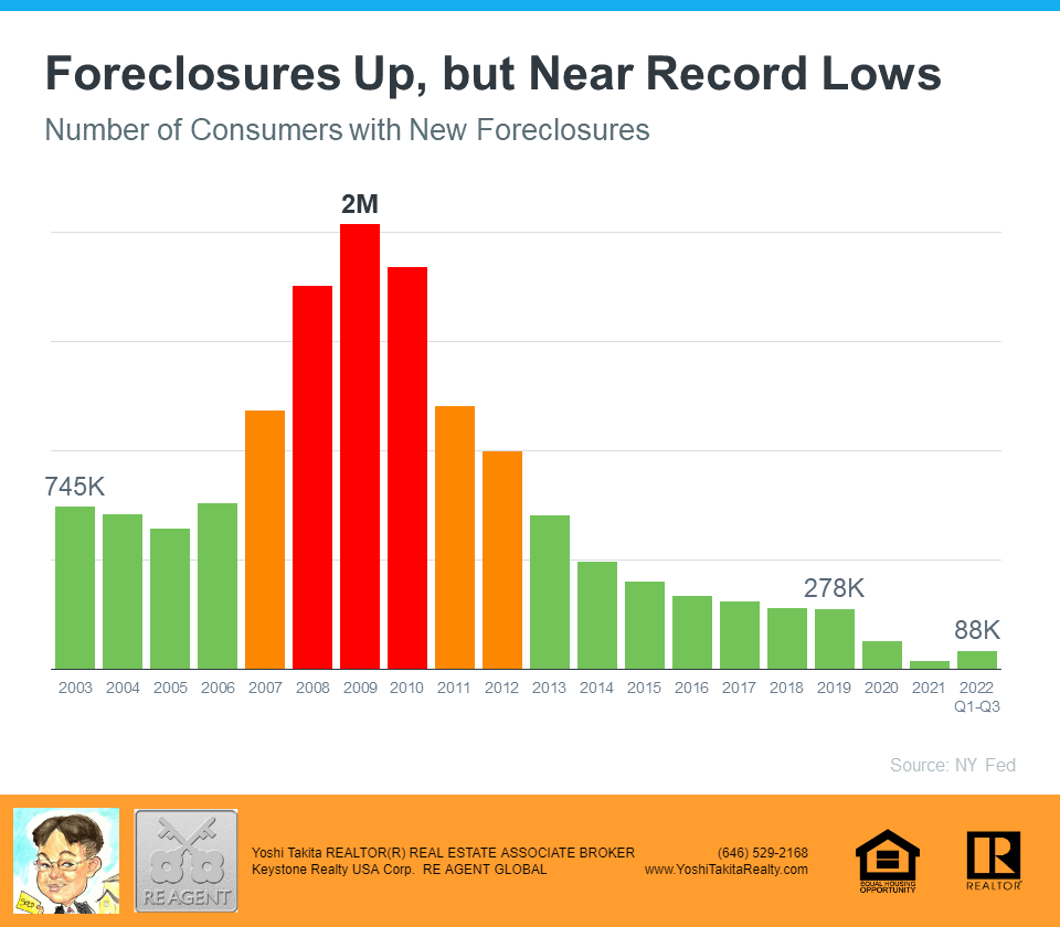 Why There Won’t Be a Flood of Foreclosures Coming to the Housing Market Why There Won’t Be a Flood of Foreclosures Coming to the Housing Market | MyKCM With the rapid shift that’s happened in the housing market this year, some people are raising concerns that we’re destined for a repeat of the crash we saw in 2008. But in truth, there are many key differences between what’s happening today and the bubble in the early 2000s. One of the reasons this isn’t like the last time is the number of foreclosures in the market is much lower now. Here’s a look at why there won’t be a wave of foreclosures flooding the market. Not as Many Homeowners Are in Trouble This Time After the last housing crash, over nine million households lost their homes due to a foreclosure, short sale, or because they gave it back to the bank. This was, in large part, because of more relaxed lending standards where people could take out mortgages they ultimately couldn’t afford. Those lending practices led to a wave of distressed properties which made their way into the market and caused home values to plummet. But today, revised lending standards have led to more qualified buyers. As a result, there are fewer homeowners who are behind on their mortgages. As Marina Walsh, Vice President of Industry Analysis at the Mortgage Bankers Association (MBA), says: “For the second quarter in a row, the mortgage delinquency rate fell to its lowest level since MBA’s survey began in 1979 – declining to 3.45%. Foreclosure starts and loans in the process of foreclosure also dropped in the third quarter to levels further below their historical averages.” There Have Been Fewer Foreclosures over the Last Two Years While you may have seen recent stories about the number of foreclosures rising today, context is important. During the pandemic, many homeowners were able to pause their mortgage payments using the forbearance program. The program gave homeowners facing difficulties extra time to get their finances in order and, in many cases, work out a plan with their lender. With that program, many were concerned it would result in a wave of foreclosures coming to the market. That fear didn’t materialize. Data from the New York Fed shows there are still fewer foreclosures happening today than before the pandemic (see graph below): Why There Won’t Be a Flood of Foreclosures Coming to the Housing Market | MyKCM That means, while there are more foreclosures now compared to last year (when foreclosures were paused), the number is still well below what the housing market has seen in a more typical year, like 2017-2019. And most importantly, the number we’re seeing now is still far below the number we saw during the market crash (shown in the red bars in the graph). The big takeaway? Don’t let a headline in the news mislead you. While foreclosures are up year-over-year, historical context is essential to understanding the full picture. Most Homeowners Have More Than Enough Equity To Sell Their Homes Many homeowners today have enough equity to sell their homes instead of facing foreclosure. Due to rapidly rising home prices over the last two years, the average homeowner has gained record amounts of equity in their home. And if they’ve stayed in their homes even longer, they may have even more equity than they realize. As Ksenia Potapov, Economist at First American, says: “Homeowners have very high levels of tappable home equity today, providing a cushion to withstand potential price declines, but also preventing housing distress from turning into a foreclosure. . . the result will likely be more of a foreclosure ‘trickle’ than a ‘tsunami.’” A recent report from ATTOM Data explains it by going even deeper into the numbers: “Only about 214,800 homeowners were facing possible foreclosure in the second quarter of 2022, or just four-tenths of one percent of the 58.2 million outstanding mortgages in the U.S. Of those facing foreclosure, about 195,400, or 91 percent, had at least some equity built up in their homes.” Bottom Line If you see headlines about the increasing number of foreclosures today, remember context is important. While it’s true the number of foreclosures is higher now than it was last year, foreclosures are still well below pre-pandemic years. If you have questions, let’s connect.