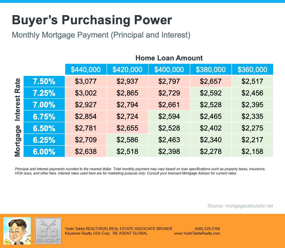 Mortgage Rates Are Dropping. What Does That Mean for You? Mortgage Rates Are Dropping. What Does That Mean for You? | MyKCM Mortgage rates have been a hot topic in the housing market over the past 12 months. Compared to the beginning of 2022, rates have risen dramatically. Now they’re dropping, and that has to do with everything happening in the economy. Nadia Evangelou, Senior Economist and Director of Forecasting at the National Association of Realtors (NAR), explains it well by saying: “Mortgage rates dropped even further this week as two main factors affecting today's mortgage market became more favorable. Inflation continued to ease while the Federal Reserve switched to a smaller interest rate hike. As a result, according to Freddie Mac, the 30-year fixed mortgage rate fell to 6.31% from 6.33% the previous week.” So, what does that mean for your homeownership plans? As mortgage rates fluctuate, they impact your purchasing power by influencing the cost of buying a home. Even a small dip can help boost your purchasing power. Here’s how it works. The median-priced home according to the National Association of Realtors (NAR) is $379,100. So, let’s assume you want to buy a $400,000 home. If you’re trying to shop at that price point and keep your monthly payment about $2,500-2,600 or below, here’s how your purchasing power can change as mortgage rates move up or down (see chart below). The red shows payments above that threshold and the green indicates a payment within your target range. Mortgage Rates Are Dropping. What Does That Mean for You? | MyKCM This goes to show, even a small quarter-point change in mortgage rates can impact your monthly mortgage payment. That’s why it’s important to work with a trusted real estate professional who follows what the experts are projecting for mortgage rates for the days, months, and year ahead. Bottom Line Mortgage rates are likely to fluctuate depending on what happens with inflation moving forward, but they have dropped slightly in recent weeks. If a 7% rate was too high for you, it may be time to contact a lender to see if the current rate is more in line with your goal for a monthly housing expense.