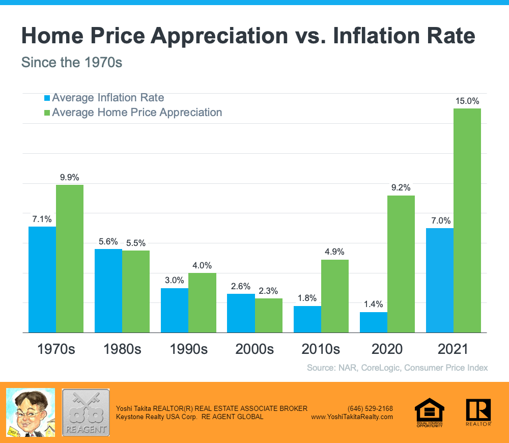 Continuing ReadingHomeownership Is a Great Hedge Against the Impact of Rising Inflation Homeownership Is a Great Hedge Against the Impact of Rising Inflation | MyKCM If you’re following along with the news today, you’ve heard about rising inflation. Today, inflation is at a 40-year high. According to the National Association of Home Builders (NAHB): “Consumer prices accelerated again in May as shelter, energy and food prices continued to surge at the fastest pace in decades. This marked the third straight month for inflation above an 8% rate and was the largest year-over-year gain since December 1981.” With inflation rising, you’re likely feeling it impact your day-to-day life as prices go up for gas, groceries, and more. These climbing consumer costs can put a pinch on your wallet and make you re-evaluate any big purchases you have planned to ensure they’re still worthwhile. If you’ve been thinking about purchasing a home this year, you’re probably wondering if you should continue down that path or if it makes more sense to wait. While the answer depends on your situation, here’s how homeownership can help you combat the rising costs that come with inflation. Homeownership Helps You Stabilize One of Your Biggest Monthly Expenses Investopedia explains that during a period of high inflation, prices rise across the board. That’s true for things like food, entertainment, and other goods and services, even housing. Both rental prices and home prices are on the rise. So, as a buyer, how can you protect yourself from increasing costs? The answer lies in homeownership. Buying a home allows you to stabilize what’s typically your biggest monthly expense: your housing cost. When you have a fixed-rate mortgage on your home, you lock in your monthly payment for the duration of your loan, often 15 to 30 years. James Royal, Senior Wealth Management Reporter at Bankrate, says: “A fixed-rate mortgage allows you to maintain the biggest portion of housing expenses at the same payment. Sure, property taxes will rise and other expenses may creep up, but your monthly housing payment remains the same. That’s certainly not the case if you’re renting.” So even if other prices increase, your housing payment will be a reliable amount that can help keep your budget in check. If you rent, you don’t have that same benefit, and you won’t be protected from rising housing costs. Investing in an Asset That Historically Outperforms Inflation While it’s true rising home prices and higher mortgage rates mean that buying a house today costs more than it did even a few months ago, you still have an opportunity to set yourself up for a long-term win. That’s because, in inflationary times, you want to be invested in an asset that outperforms inflation and typically holds or grows in value. The graph below shows how the average home price appreciation outperformed the average inflation rate in most decades going all the way back to the seventies – making homeownership a historically strong hedge against inflation (see graph below): Homeownership Is a Great Hedge Against the Impact of Rising Inflation | MyKCM So, what does that mean for you? Today, experts forecast home prices will only go up from here thanks to the ongoing imbalance of supply and demand. Once you buy a house, any home price appreciation that does occur will grow your equity and your net worth. And since homes are typically assets that grow in value, you have peace of mind that history shows your investment is a strong one. That means, if you’re ready and able, it makes sense to buy today before prices rise further. Bottom Line If you’ve been thinking about buying a home this year, it makes sense to act soon, even with inflation rising. That way you can stabilize your monthly housing cost and invest in an asset that historically outperforms inflation. If you’re ready to get started, let’s connect so you have expert advice on your specific situation when you’re ready to buy a home.