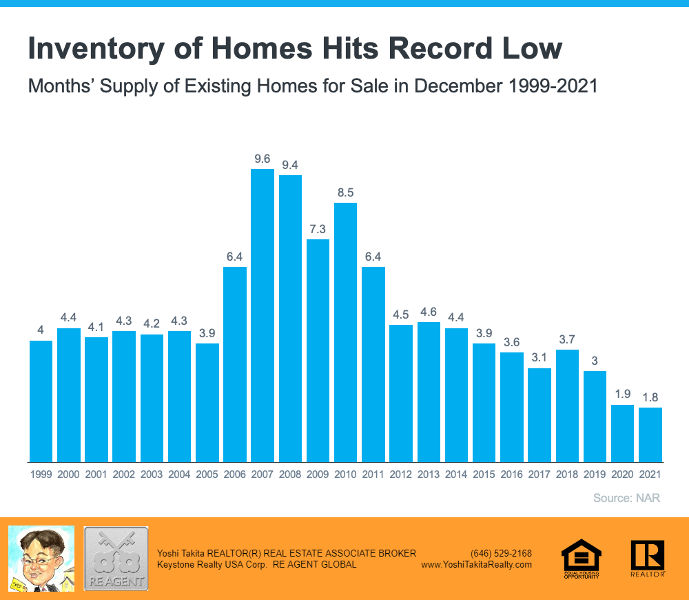 Continuing ReadingWhy Right Now Is a Once-in-a-Lifetime Opportunity for Sellers Why Right Now Is a Once-in-a-Lifetime Opportunity for Sellers | MyKCM If you’re thinking about selling your house in 2022, you truly have a once-in-a-lifetime opportunity at your fingertips. When selling anything, you always hope for strong demand for the item coupled with a limited supply. That maximizes your leverage when you’re negotiating the sale. Home sellers are in that exact situation right now. Here’s why. Demand Is Very Strong According to the latest Existing Home Sales Report from the National Association of Realtors (NAR), 6.18 million homes were sold in 2021. This was the largest number of home sales in 15 years. Lawrence Yun, Chief Economist for NAR, explains: “Sales for the entire year finished strong, reaching the highest annual level since 2006. . . . With mortgage rates expected to rise in 2022, it's likely that a portion of December buyers were intent on avoiding the inevitable rate increases.” Demand isn’t expected to weaken this year, either. In addition, the Mortgage Finance Forecast, published last week by the Mortgage Bankers’ Association (MBA), calls for existing-home sales to reach 6.4 million homes this year. Supply Is Very Limited The same sales report from NAR also reveals the months’ supply of inventory just hit the lowest number of the century. It notes: “Total housing inventory at the end of December amounted to 910,000 units, down 18% from November and down 14.2% from one year ago (1.06 million). Unsold inventory sits at a 1.8-month supply at the present sales pace, down from 2.1 months in November and from 1.9 months in December 2020.” The reality is, inventory decreases every year in December. That’s just how the typical seasonal trend goes in real estate. However, the following graph emphasizes how this December was lower than any other December going all the way back to 1999. Why Right Now Is a Once-in-a-Lifetime Opportunity for Sellers | MyKCM Right Now, Sellers Have Maximum Leverage As mentioned above, when there’s strong demand for an item and a limited supply of it available, the seller has maximum leverage in the negotiation. In the case of homeowners who are thinking about selling, there may never be a better time than right now. While demand is this high and inventory is this low, you’ll have leverage in all aspects of the sale of your house. Today’s buyers know they need to be flexible negotiators that make very competitive offers, so here are a few areas that could tip in your favor when your house goes on the market: Competitive sales price Flexible closing date Potential for a leaseback to allow you more time to find a home Minimal offer contingencies Bottom Line If you’re thinking of selling your house this year, now is the optimal time to list it. Let’s connect to discuss how you can put your house on the market today.