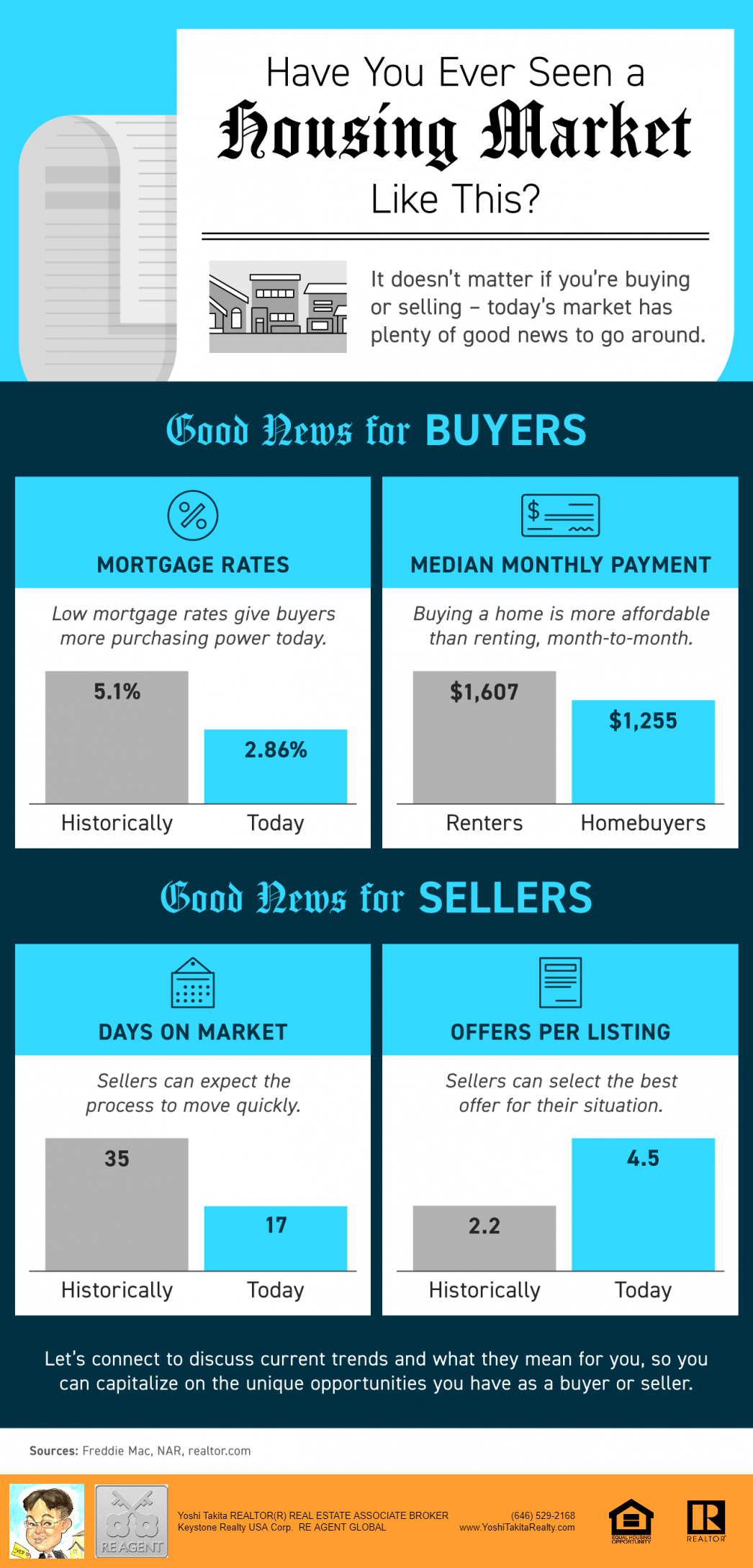 Have You Ever Seen a Housing Market Like This? [INFOGRAPHIC] Have You Ever Seen a Housing Market Like This? [INFOGRAPHIC] | MyKCM Some Highlights Whether you’re buying or selling – today’s housing market has plenty of good news to go around. Buyers can take advantage of today's mortgage rates to escape rising rents and keep monthly payments affordable. Sellers can reap the benefits of multiple offers and a fast sale. If this sounds like good news to you, let’s connect today so you can capitalize on the unique opportunity you have in today’s market.