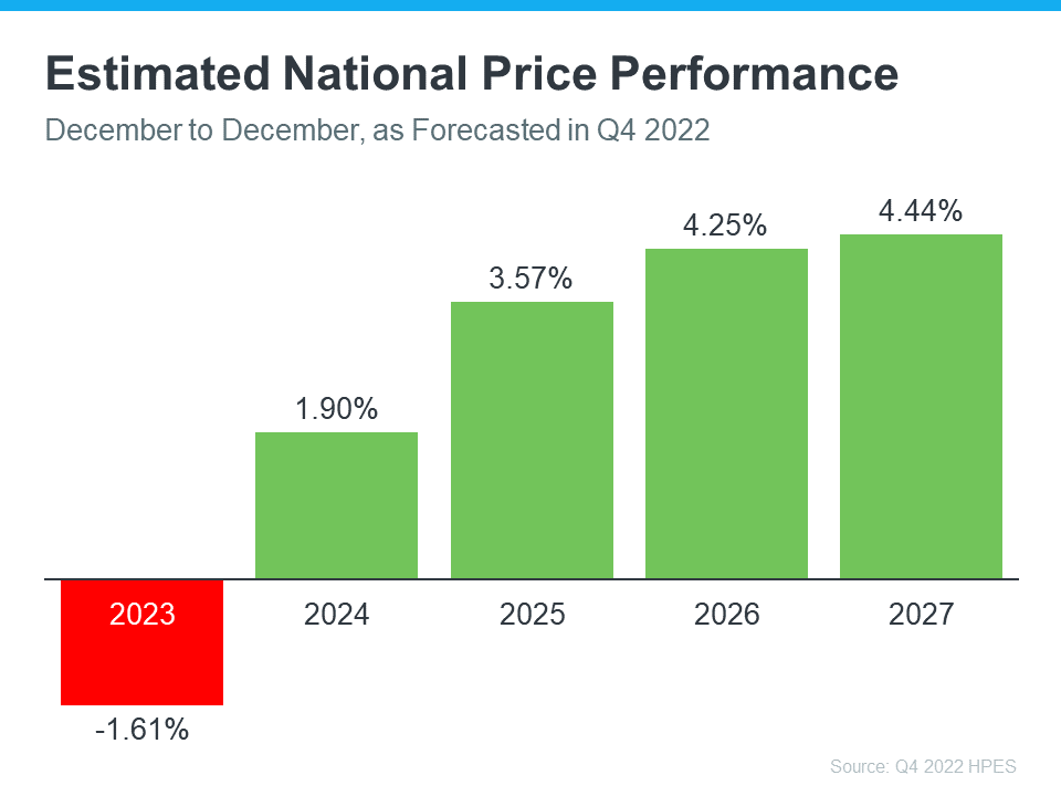 Continuing ReadingWhy Buying a Home Is a Sound Decision If you’re thinking about buying a home, you want to know the decision will be a good one. And for many, that means thinking about what home prices are projected to do in the coming years and how that could impact your investment. This year, we aren’t seeing home prices fall dramatically. As the year goes on, however, some markets may go up in value while others may lose value. That’s why it’s helpful to keep the long-term view in mind. Experts project a return to a steadier rate of price appreciation in the years that follow. Home Price Appreciation in the Years Ahead Over 100 economists, investment strategists, and housing market analysts were polled by Pulsenomics in their latest quarterly Home Price Expectation Survey (HPES). The report indicates what they believe will happen with home prices over the next five years. As the graph below shows, after mild depreciation this year, these experts forecast home prices will return to more normal levels of appreciation through 2027. The big takeaway is experts aren’t forecasting a drastic fall in home prices nationally, even though some markets will see home price appreciation while others may depreciate. And when they look further out, they see steady price appreciation in the long run. That’s a great example of why homeownership wins over time. What Does This Mean for You? Once you buy a home, price appreciation raises your home’s value, and that grows your household wealth. Here’s how a typical home’s value could change over the next few years using the expert price appreciation projections from the survey mentioned above (see graph below): In this example, if you bought a $400,000 home at the beginning of this year and factor in the forecast from the HPES, you could accumulate over $54,000 in household wealth over the next five years. So, if you’re wondering if buying a home is a sound decision, keep in mind what a strong wealth-building tool it is long term. Bottom Line According to the experts, while we may see slight depreciation this year, home prices are expected to grow over the next five years. If you’re ready to become a homeowner, know that buying today can set you up for long-term success as home values (and your own net worth) are projected to grow. Let’s connect to begin the homebuying process today.
