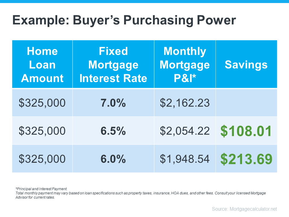 Continuing ReadingHow Changing Mortgage Rates Can Affect You The 30-year fixed mortgage rate has been bouncing between 6% and 7% this year. If you’ve been on the fence about whether to buy a home or not, it’s helpful to know exactly how a 1%, or even a 0.5%, mortgage rate shift affects your purchasing power. The chart below helps show the general relationship between mortgage rates and a typical monthly mortgage payment: Even a 0.5% change can have a big impact on your monthly payment. And since rates have been moving between 6% and 7% for a while now, you can see how it impacts your purchasing power as rates go down. What This Means for You You may be tempted to put your homebuying plans on hold in hopes that rates will fall. But that can be risky. No one knows for sure where rates will go from here, and trying to time them for your benefit is tough. Lisa Sturtevant, Housing Economist at Bright MLS, explains: “It is typically a fool’s errand for a homebuyer to try to time rates in this market . . . But volatility in mortgage rates right now can have a real impact on buyers’ monthly payments.” That’s why it’s critical to lean on your expert real estate advisors to explore your mortgage options, understand what impacts mortgage rates, and plan your homebuying budget around today’s volatility. They’ll also be able to offer advice tailored to your specific situation and goals, so you have what you need to make an informed decision. Bottom Line Your ability to buy a home could be impacted by changing mortgage rates. If you’re thinking about making a move, let’s connect so you have a strong plan in place.