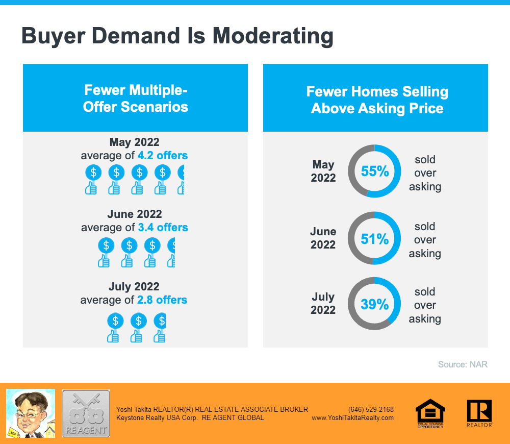 Continuing ReadingWhat Sellers Need To Know in Today’s Housing Market What Sellers Need To Know in Today’s Housing Market | MyKCM If you’re thinking about selling your house, you may have heard about the housing market slowing down in recent months. While it’s still a sellers’ market, the peak frenzy the market saw over the past two years has cooled some. If you’re asking yourself if you’ve missed your chance to sell your house and make a move, the good news is you haven’t – motivated buyers are still out there. But you do need to price your house right for today’s market. Here’s why. As Lawrence Yun, Chief Economist at the National Association of Realtors (NAR), says: “Homes priced right are selling very quickly, but homes priced too high are deterring prospective buyers.” It’s true buyer demand has slowed over the past few months as higher mortgage rates made it more expensive to buy a home. The result is fewer bidding wars and less competition among buyers (see visual below): What Sellers Need To Know in Today’s Housing Market | MyKCM But don’t forget – that’s compared to the severely overheated market we saw over the past two years. According to the latest Confidence Index from NAR: “. . . 39% of homes sold above list price, down from 51% a month ago and 50% a year ago.” While this is a slower pace than even one month ago, serious buyers are still actively in the market, and they’re buying homes that are priced right. In fact, the Confidence Index also notes the average home is selling in just 14 days. If you’re aiming to sell your house, be sure you’re working with your agent to price it for today’s housing market. As buyer demand softens, it’s important to understand this isn’t the same market as last year. It’s not even the same market as just a few months ago. But it is still a sellers’ market. If you’re ready to sell your house, seek the advice of a real estate professional. In some cases, you’ll need to adjust your expectations accordingly to meet the market where it is today. Selma Hepp, Interim Lead, Deputy Chief Economist at CoreLogic, explains what’s happening and what it means when you sell: “Signs of a broader slowdown in the housing market are evident, . . . This is in line with our previous expectations and given the notable cooling of buyer demand due to higher mortgage rates. . . . Nevertheless, buyers still remain interested, which is keeping the market competitive — particularly for attractive homes that are properly priced.” Bottom Line While the housing market has cooled from its overheated frenzy, it’s still a sellers’ market. Let’s connect so you understand what’s happening with buyer demand and home prices in our local area as you get ready to enter the market.