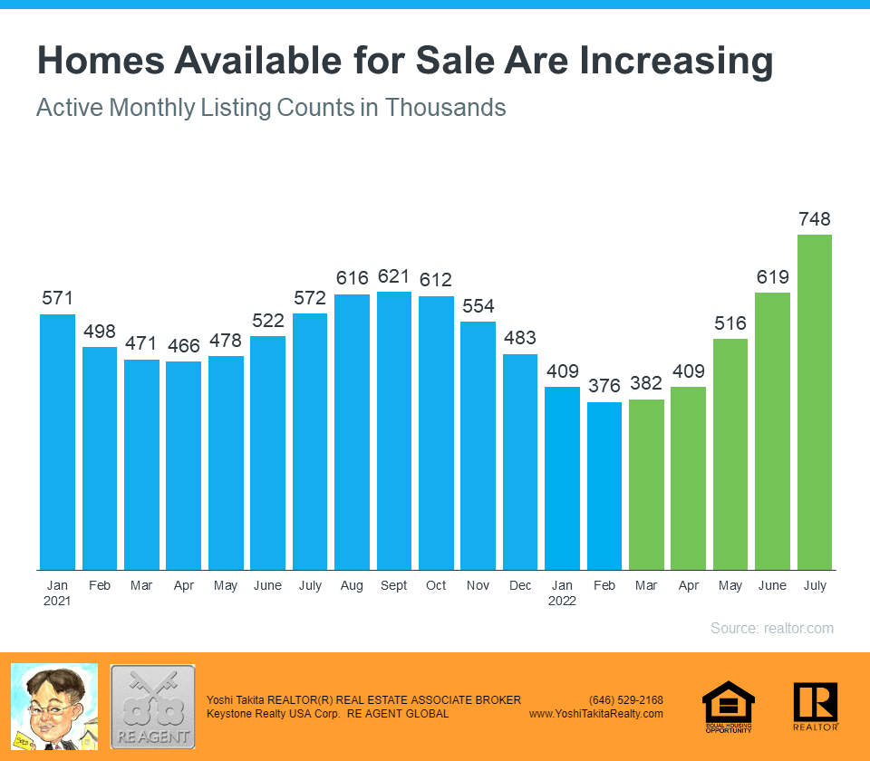 Continuing ReadingWhy You May Want To Start Your Home Search Today Why You May Want To Start Your Home Search Today | MyKCM If you’re thinking about buying a home, you likely have a lot of factors on your mind. You’re weighing your own needs against higher mortgage rates, today’s home prices, and more to try to decide if you want to jump into the market. While some buyers may wait things out, there’s a reason serious buyers are making moves right now, and that’s the growing number of homes for sale. So far this year, housing inventory has been increasing and that’s making the prospect of finding your dream home less difficult. While there are always reasons you could delay making a big decision, there are also always reasons to consider moving forward. And having a growing number of options for your home search may be exactly what you needed to feel more confident in making a move. What’s Causing Housing Inventory To Grow? As new data comes out, we're getting an updated picture of why housing supply is increasing so much this year. As Bill McBride, Author of Calculated Risk, explains: “We are seeing a significant change in inventory, but no pickup in new listings. Most of the increase in inventory so far has been due to softer demand - likely because of higher mortgage rates.” Basically, the inventory growth is primarily from homes staying on the market a bit longer (known as active listings). And that’s happening because higher mortgage rates and home prices have helped moderate the peak frenzy of buyer demand. The graph below uses data from realtor.com to show how much active listings have risen over the past five months as a result (shown in green): Why You May Want To Start Your Home Search Today | MyKCM Why This Growth Is Good News for You Regardless of the source, the increase in available housing supply is good for buyers. More housing supply actively for sale means you have more options as your search for your next home. A recent article from realtor.com explains just how significant the inventory growth has been and why it’s good news for your plans to buy: “Nationally, the inventory of homes actively for sale on a typical day in July increased by 30.7% over the past year, the largest increase in inventory in the data history and higher than last month’s growth rate of 18.7% which was itself record-breaking. This amounted to 176,000 more homes actively for sale on a typical day in July compared to the previous year and more choice for buyers who are still looking for a new home.” The growth this year is certainly good news for you, especially if you’ve had trouble finding a home that meets your needs. If you start your search today, those additional options should make it less difficult to find a home than it would have been over the past two years. Bottom Line If you’re ready to jump into the market and take advantage of the increasing supply of homes for sale, let’s connect today. The opportunity is knocking, will you answer?