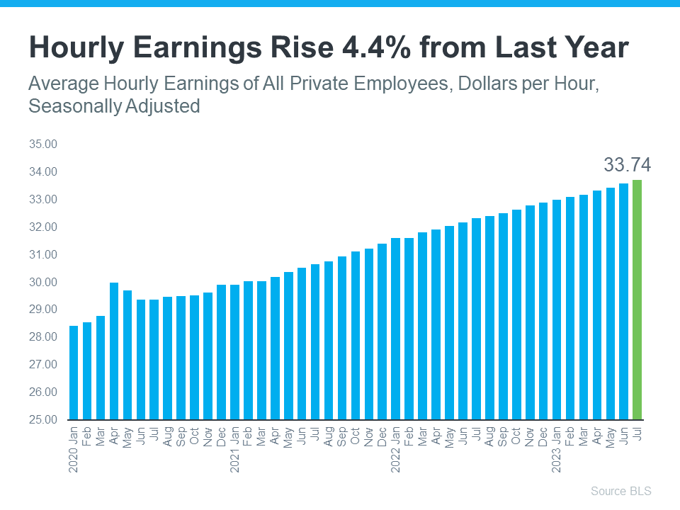 Continuing ReadingMore Jobs and Better Pay Leads to More Buyer Demand There’s been talk about a recession for quite a while now. But the economy has been remarkably resilient. Why? One reason is employment and wages have stayed strong. Let’s look at the latest information on each one and why both are good news if you’re thinking about selling your house. More Jobs Are Being Created Instead of facing the job losses typical of any recession, the economy has been growing and adding jobs. According to the Bureau of Labor Statistics (BLS), 187,000 jobs were created in July, which is up from the 185,000 created in June. That means more people are finding work. In fact, so many jobs are being added that the unemployment rate is far lower than the long-term average of 5.7% (see graph below): A low unemployment rate means that most people who want to work are finding jobs. When people have jobs, they have steady incomes – and that can help set them up to consider homeownership. People Are Making More Money And data also shows hourly earnings have been going up pretty steadily over the past few years (see graph below): When wages rise, people have more money that they could save or use toward buying a home. This increase in income helps offset some of the affordability challenges in the housing market today. Affordability depends on three main factors: wages, home prices, and mortgage rates. With higher home prices and mortgage rates right now, Builder Online summarizes how growing wages can help: “The housing market has been a beneficiary of the strong economy and labor market. Many of those employed have saved money over the past few years and used those funds toward a down payment on a home.” If you’re thinking about selling your house, a strong job market, growing wages, and the resulting buyer demand is fantastic news. It means there’s a larger pool of potential buyers out there who are in a position to pursue their dreams of homeownership. Bottom Line With more jobs and rising wages creating eager buyers, there’s a lot going in your favor. Let’s connect so you have someone who can guide you through the process of selling your house, from setting the right price to getting your home ready to show.