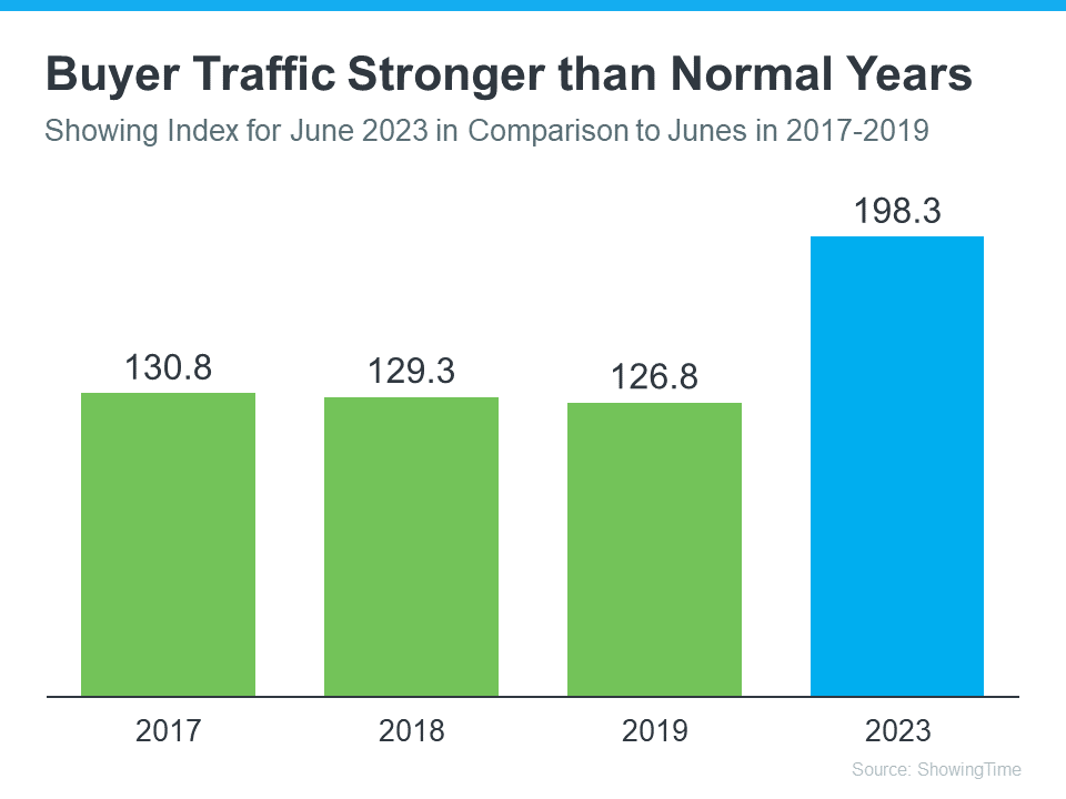 Continuing ReadingBuyer Traffic Is Still Stronger than the Norm Are you putting off selling your house because you’re worried no one’s buying because of where mortgage rates are? If so, know this: the latest data shows plenty of buyers are still out there, and they’re purchasing homes today. Here’s the data to prove it. The ShowingTime Showing Index is a measure of buyers touring homes. The graph below uses the latest numbers available and compares them to the same month in the last normal years to show just how active today’s buyers still are: As you can see, when June 2023 numbers are stacked alongside what’s typical for the housing market at this time of year, it's clear buyers are still active. And, they’re actually a lot more active than the norm. If you’re wondering how this could possibly be true, it’s because buyers are getting used to higher mortgage rates and accepting them as the new reality. As Danielle Hale, Chief Economist, Realtor.com, explains: “Interest rate hikes continue to further cut into buyers' purchasing power, although they appear to have adapted to the higher mortgage rate environment . . .” It’s simple. Buyers will always need to buy, and those who can afford to move at today’s rates are going to do so. The Key Takeaway for You While it’s true things have slowed down from the frenzy of the last couple of years, it doesn’t mean today’s market is at a standstill. The reality is: buyer traffic is still strong today. Even with today’s mortgage rates, plenty of buyers are still making their moves. So why delay your own move when there’s clearly a market for your house? Bottom Line Don’t put off your plans because you’re worried no one will buy your home. The opposite is true, and more buyers are more active than the norm. Let’s connect to get your house ready to sell, so it makes the best first impression possible on those eager buyers.