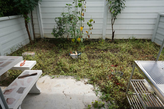 A patio in front of the house