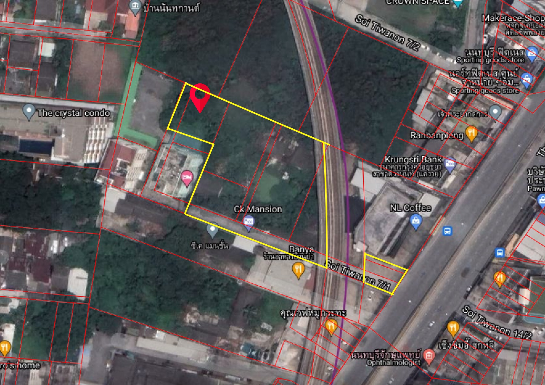 Land for sale, area size 2,500 square wah, Soi Tiwanon 7/1, located at Talat Khwan Subdistrict, Mueang Nonthaburi District. Nonthaburi Province Near MRT Nonthaburi Government Center Station Close to the community and the main road If interested, you can inquire.